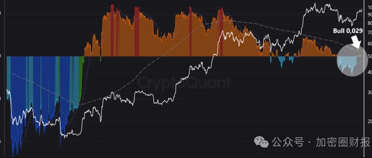 在加密货币的舞台上,市场周期如同一场交响乐,既有科学的严谨,又充满戏剧的张力。自2024年2月24日起,CryptoQuant牛熊市场周期指标持续发出熊市信号,为市场笼罩了一层阴霾。然而,随着比特币突破10万美元大关,市场开始显现微妙但振奋人心的转变。该指标在数周以来首次闪烁出看涨信号,尽管信号强度较弱(系数仅为0.029),其出现本身已点燃了投资者的希望。更引人注目的是,牛熊30日移动平均线(30DMA)开始向上攀升,预示着可能突破365日移动平均线(365DMA)。历史上,这一交叉往往是比特币开启抛物线式上涨的前奏。