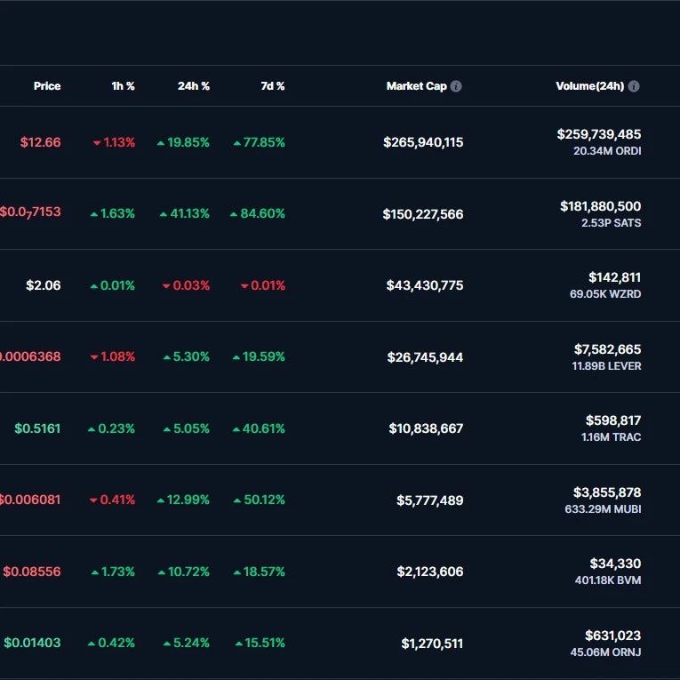 加密市场向来以周期性著称,比特币生态的这次反弹完美契合了「低预期反转」的经典逻辑。经过一年的持续抛售,生态内多数代币估值已被压缩到极致。ORDI、SATS 等头部资产从高点跌超 90%,被市场视为「无交易逻辑」的弃儿。然而,正是在这种绝望情绪中,反弹的火花往往悄然点燃。