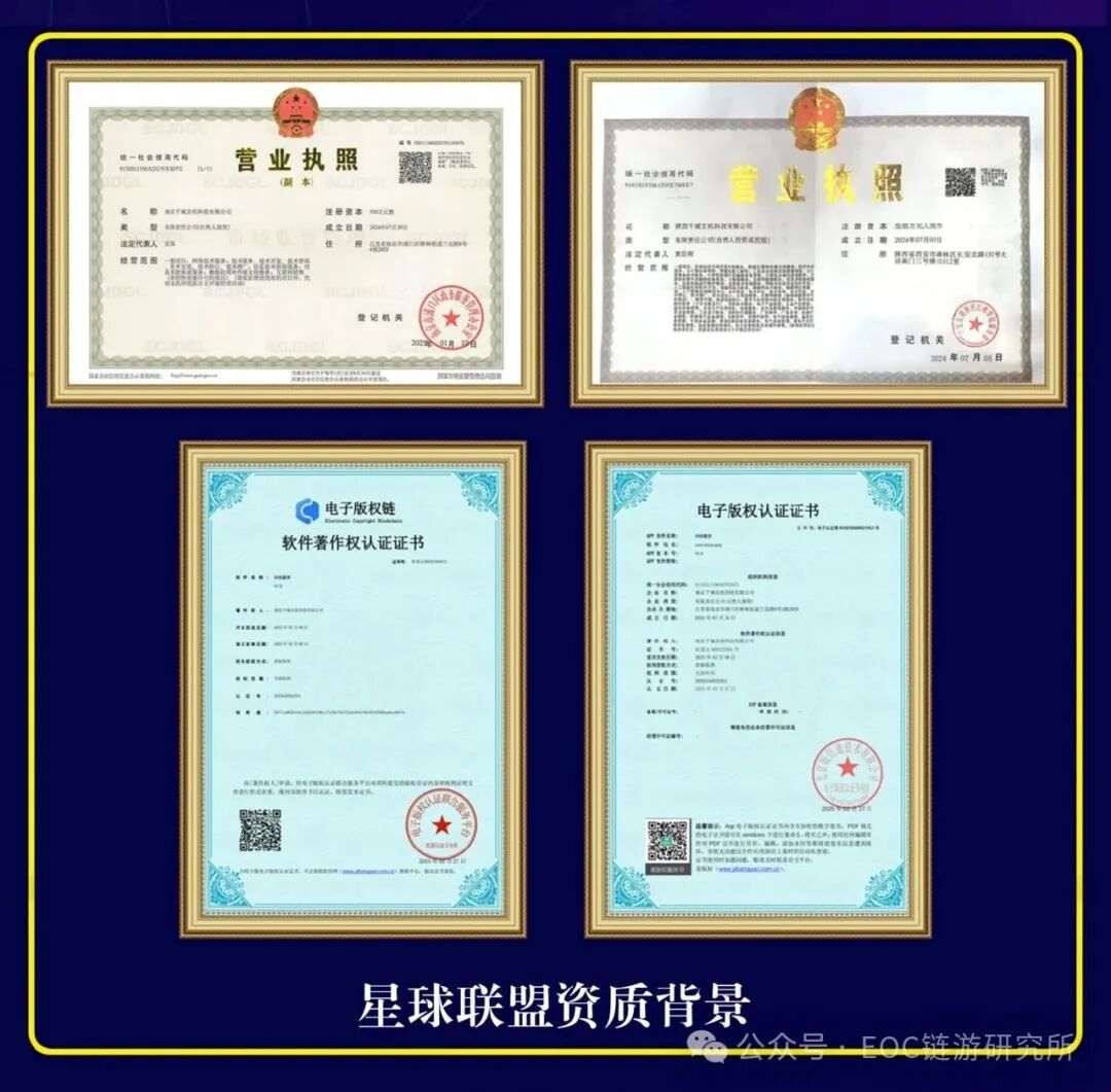 星球联盟由南京千城玄机科技有限公司开发,营业执照以及软件著作权认证书以及电子版权认证书均已落实到位,全新玩法模式致力于打造技术赋能+生态协同+收益共享的可持续创富共同体。