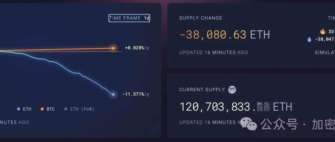 :L2扩容和账户抽象刺激了链上活动,主网交易量激增。据X平台观察,升级后数小时内ETH销毁率飙升,部分用户甚至报告短期年通缩率达-6.8%。虽然这一极端数据可能受短期热情驱动,但日销毁量翻倍已成事实。 - 发行量缩水