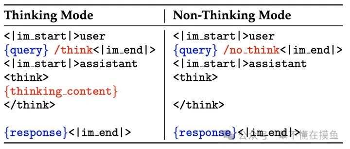 里面对混合思考模式能否正确在thinking 和 non-thinking modes中进行切换,利用reward信号反馈监督,进一步保证格式遵循。