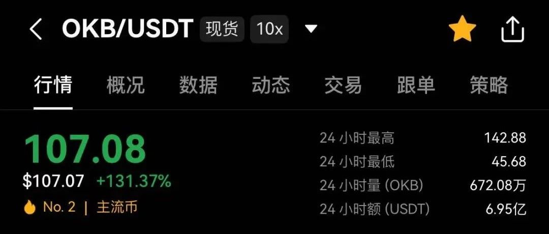 消息"OKX 对历史回购以及预留的65256712.097 枚 OKB 进行一次性销毁,此后OKB的总发行量将固定为 2100万枚"一出后,OKB爆拉,从40多美元一度拉到了140,一天翻3倍。