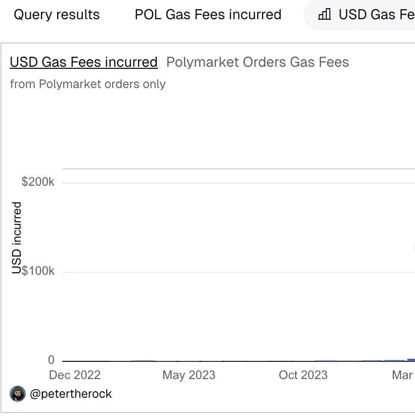作为应用层,Polymarket 的爆火曾经为 Polygon 带来了客观的直接经济贡献,数据分析师dash于 Dune 整理的数据历史显示: