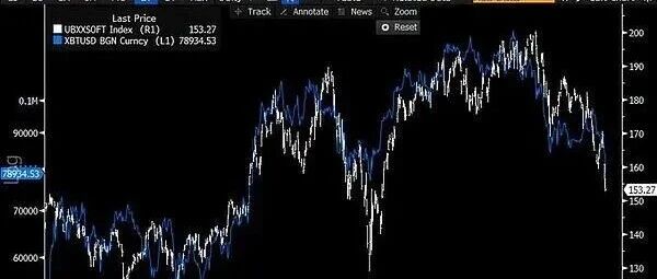 结果发现,这种说法不仅推翻了比特币的崩盘叙事,也戳穿了SaaS的衰退论调 —— SaaS指数和比特币的走势图竟然一模一样。这背后究竟意味着什么?
